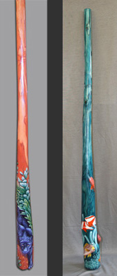 Die verschiedensten Kundenwünsche werden auch auf den Instrumenten von Eddy Halat realisiert, wie z. B. hier auf den beiden Didgeridoos
